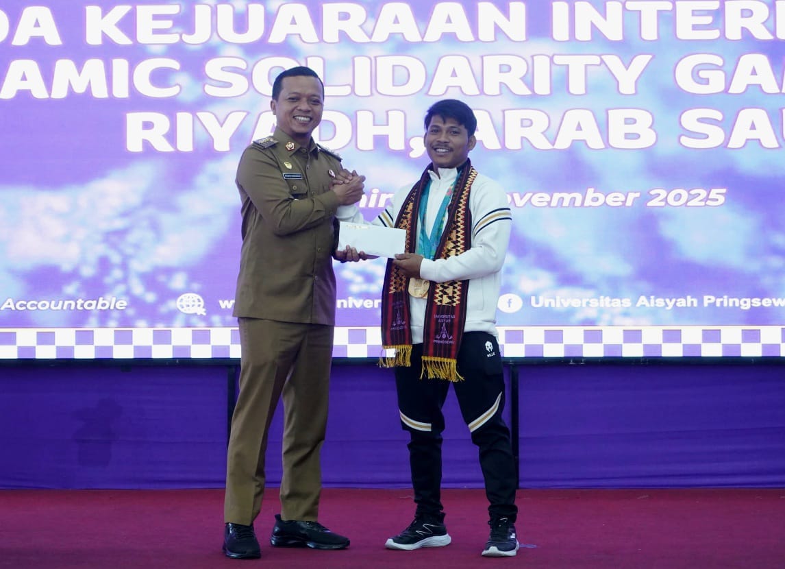 Pringsewu -seputarindonesia co.id. Muhammad Husni, mahasiswa Universitas Aisyah Pringsewu (UAP) telah mengharumkan nama bangsa di kancah internasional melalui olahraga angkat besi. Husni berhasil meraih medali emas pada ajang Islamic Solidarty Games (ISG) 2025 di Riyadh, Saudi Arabia pada 8 November 2025 lalu.