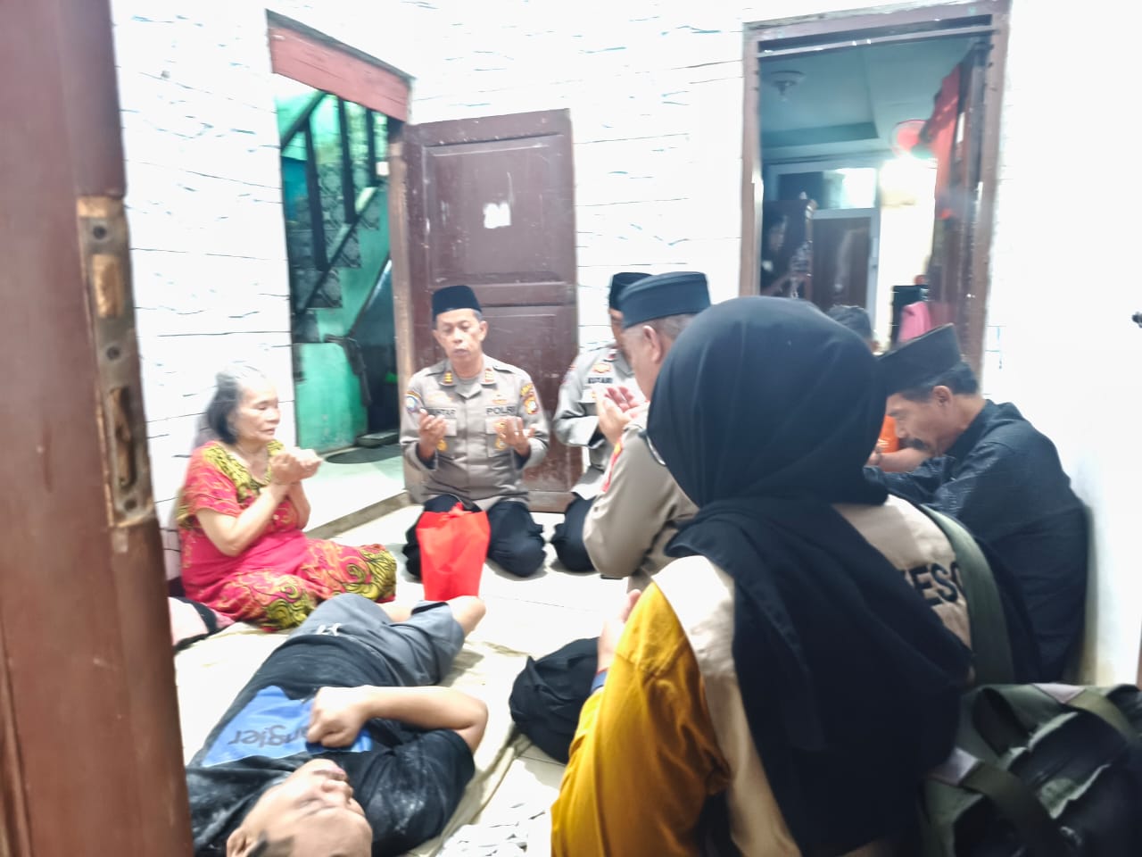 Selain memberikan dukungan moril, Kapolsek turut menyerahkan bantuan paket sembako sebagai bentuk kepedulian dan perhatian kepada keluarga tersebut.