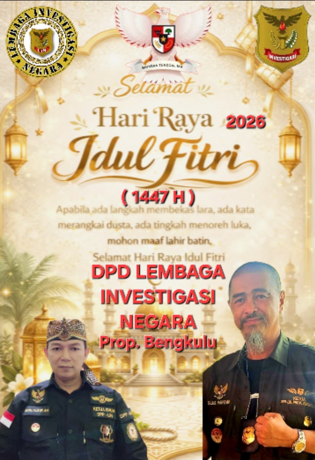 DPD LEMBAGA INVESTIGASI NEGARA Prop. BENGKULU Sampaikan Ucapan Selamat Idul Fitri 1447 Hijriyah, Ajak Perkuat Silaturahmi dan Saling Membangun Demi Indonesia Jaya